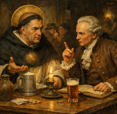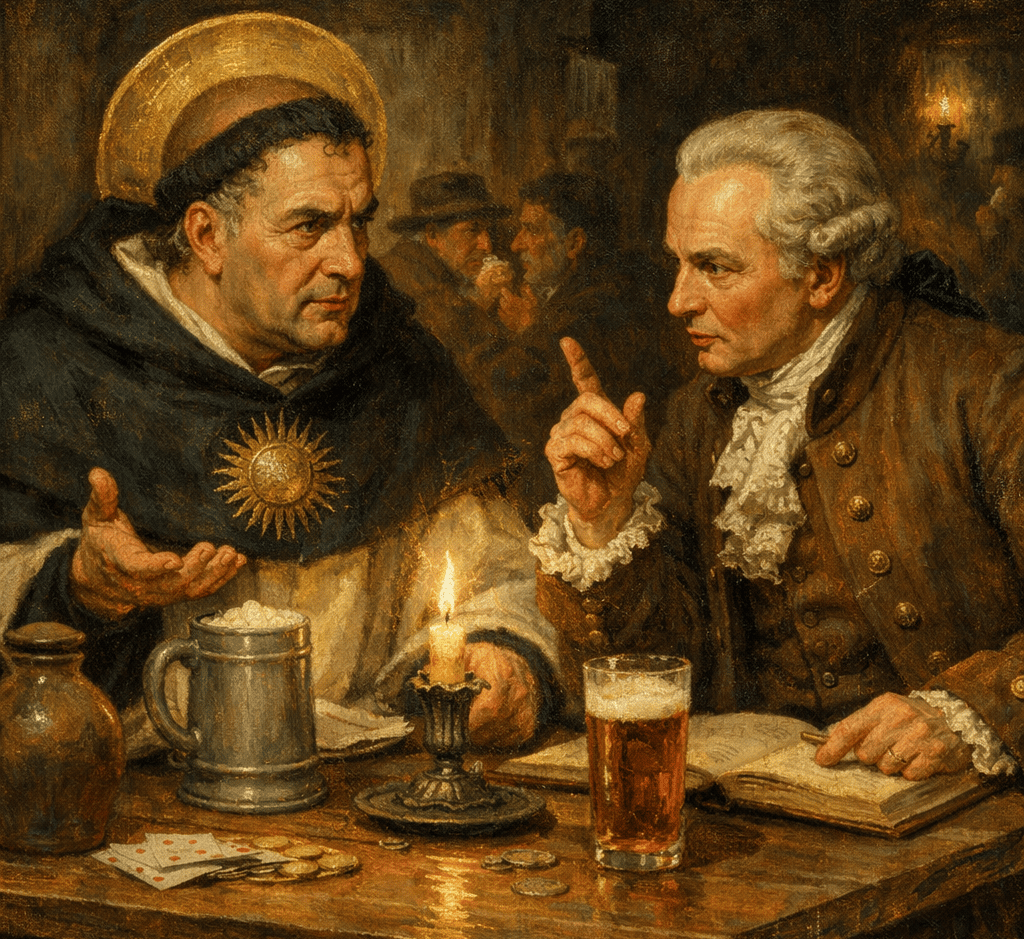 Assim, o debate não se trata de uma briga gratuita com Kant por diversão no ambiente universitário, nem de uma encenação para exibir erudição em um bar. Ele ocorre porque há um problema mais profundo por trás dessas questões: se o ser humano conhece o ser ou apenas organiza fenômenos; se a verdade depende primeiro da realidade ou da estrutura do sujeito; se a identidade das coisas reside nelas ou é apenas uma construção mental; e se a liberdade humana se concretiza no bem real ou em uma autonomia vazia. Em outras palavras, o diálogo se concentra na própria possibilidade de verdade, mundo e vida moral, que é precisamente o tipo de tema que parece abstrato até o instante em que começa a influenciar tudo.